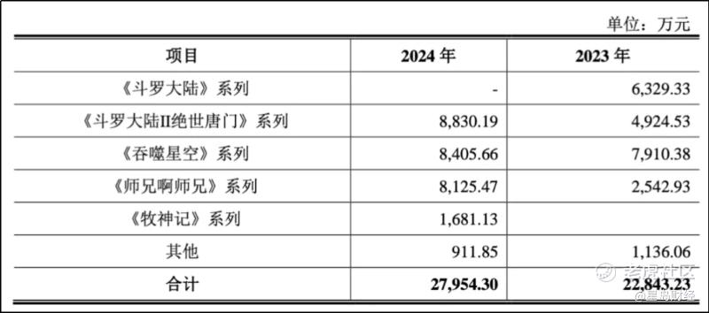 据《关于杭州玄机科技股份有限公司股票公开转让并挂牌申请文件的审核问询回复》披露,玄机科技主要业务包括数字内容制作服务、数字内容创作及授权、衍生品销售业务。核心业务数字内容制作服务中,腾讯视频《斗罗大陆II绝世唐门》系列、腾讯视频《吞噬星空》系列、优酷《师兄啊师兄》系列2024年合计收入超2.5亿元,占总营收的3/4。