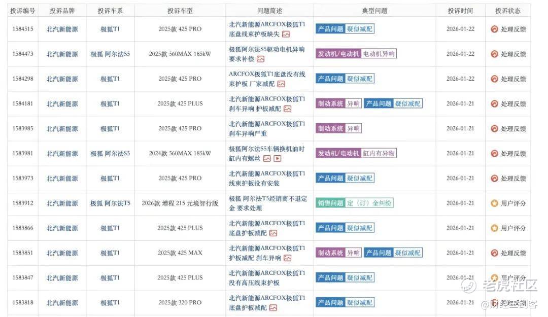 车主们纷纷在车质网、黑猫投诉甚至极狐官方APP等平台投诉,反馈车辆没有配备线束护板,这无疑给车辆的安全埋下了隐患。一位2025款极狐T1 425PRO的车主在车质网发帖表示,自己购买的车辆并未配备线束护板,多方沟通后均得到“不给加装”的回复;为提升车辆安全性,希望厂家能免费安装。另一位同配置车主发帖反馈同样的问题称,高压线束暴露易受路面石子、泥水冲击,长期磨损可能导致绝缘层破损,引发短路或电池热质失控起火,希望厂家能予以解决。也有车主反馈,仅极狐T1顶配版车型425MAX配置有线束护板,其他版本车型均需联系售后安装。
