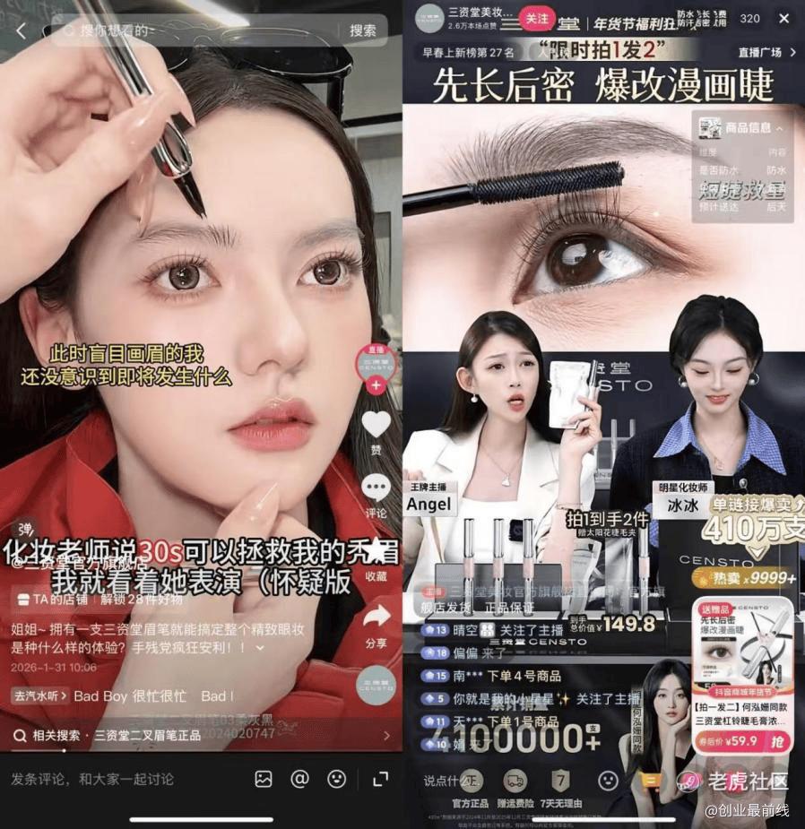 这种聚焦细分痛点+极致性价比+可视化内容+高强度投流的组合拳,让二叉眉笔上市4个月销量超160万支,随后推出的49.9元钢管睫毛打底膏等产品也延续了这一成功公式。