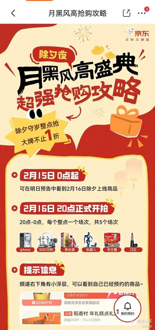 而在“除夕夜抢购攻略”中,可以了解详细的活动玩法。具体表现在,2月15日0点起,可预览2月16日除夕上线商品;