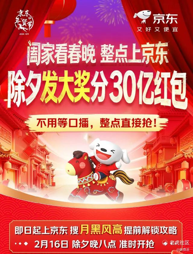 这一波福利过后,京东还将在除夕夜上演重头戏,即在当晚分发各种惊喜大奖和30亿红包。并且,无需复杂任务、不等口播,整点即可直接抢,玩法简单直接。
