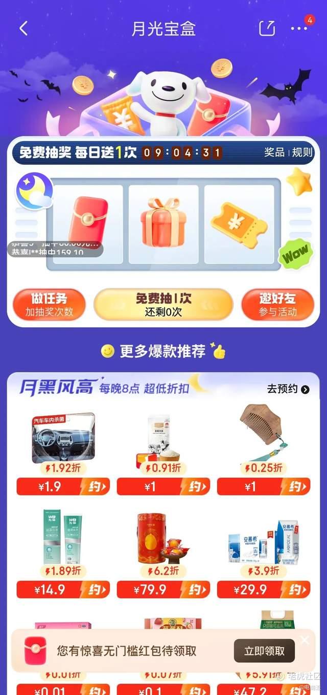 具体参与规则如下,在京东APP搜索“月黑风高”,进入页面后可以在“月光宝盒抽红包”中,抽取无门槛红包。