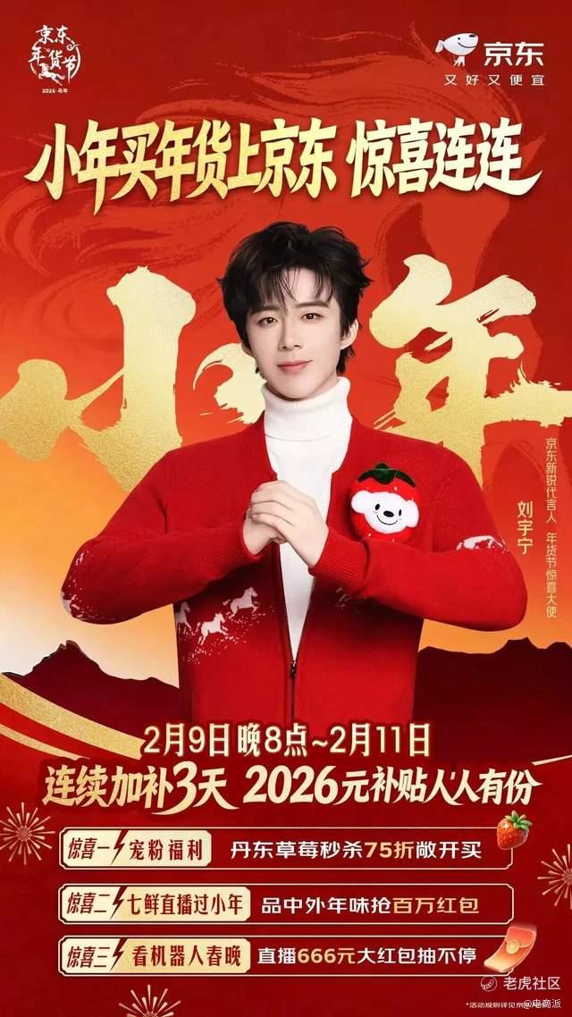 早在前几天,京东就宣布在2月9日晚8点至2月11日,连续加补3天,2026元补贴人人有份,包含75折的丹东草莓,七鲜直播间百万红包,还有机器人春晚中的666元大红包。