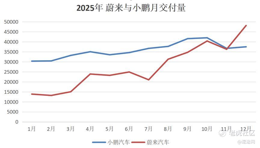 这使得相比于蔚来,小鹏对外所呈现的品牌形象更加平价,其中MONA 03的大卖让外界认为小鹏已经“起死回生”,但事实上从2025年销量来看,尽管小鹏平均月交付已达35787辆,但从个月来看整体较为稳定,没有出现新车明显刺激销量增长的情况,在这么“稳”的交付量背景下,小鹏能否在第四季度盈利也值得商榷。