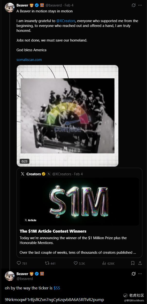 因此,Beaver 被右翼倾向的英文圈(尤其是美国)玩家视为英雄。在 X 宣布他获得百万美元文章大奖后,他也立即宣传了 Somaliscan,并且在推文的评论区中附上了 CA: