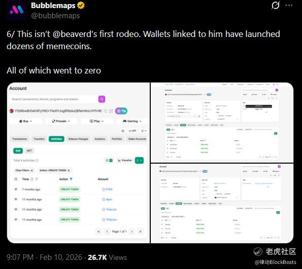 最后,Bubblemaps 还指出,所有跟踪到的 Beaver 相关地址,不止发了这一个代币,而是还有很多,并且统统都归零了。