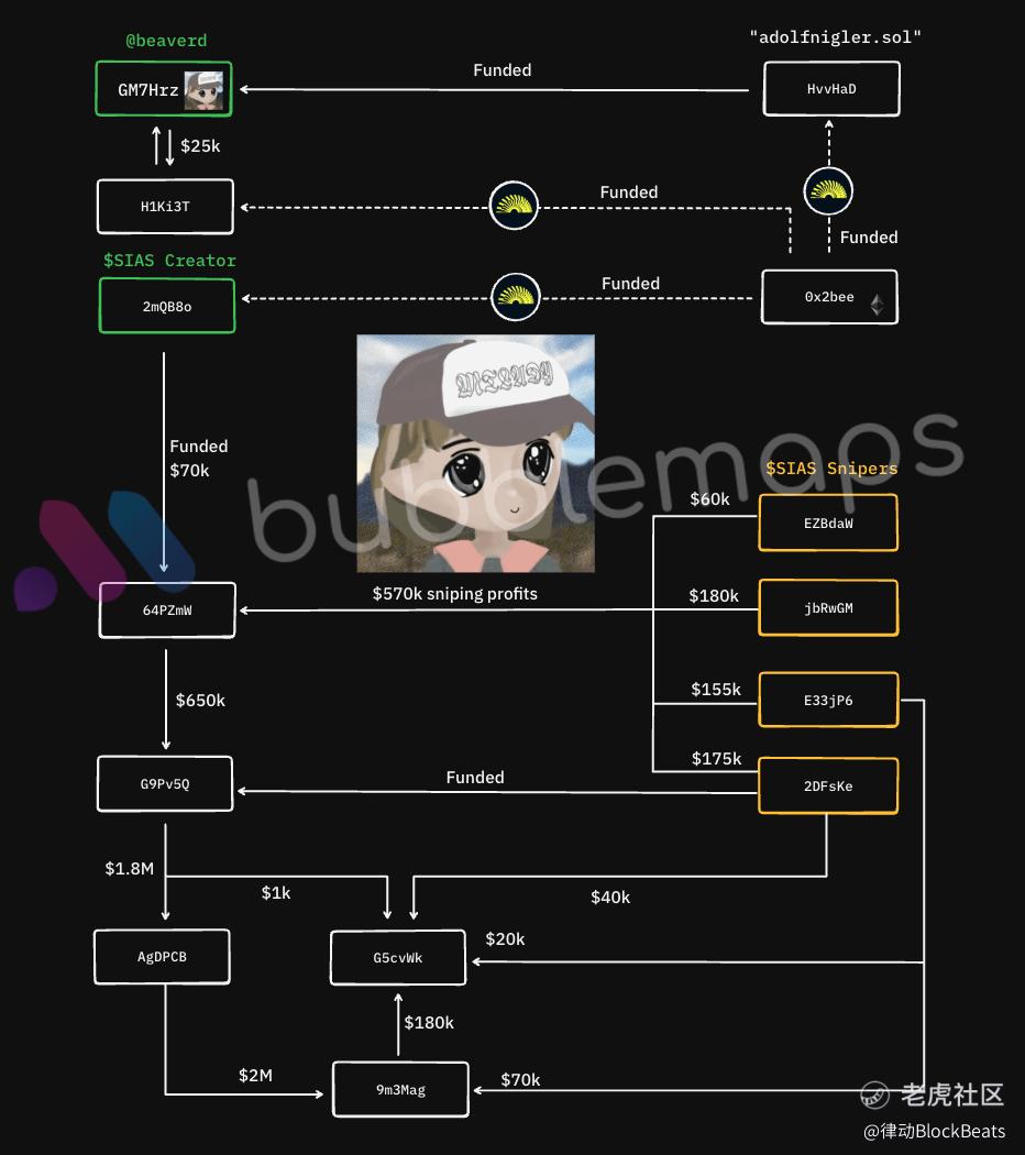 Bubblemaps 根据链上分析进一步指出,Beaver 不仅是 dev,而且用了另外 4 个地址对该代币进行了狙击,总计获利 60 万美元。