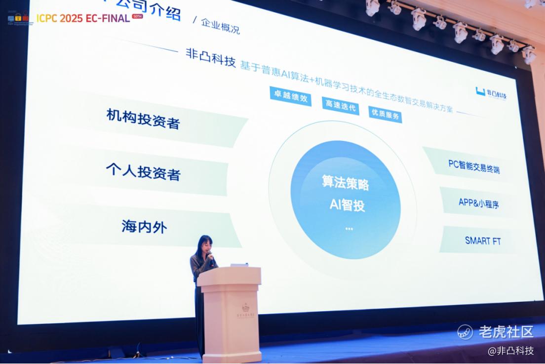 闭幕式现场,非凸科技首席运营官郑媛姿受邀出席并分享行业洞见。她表示,ICPC赛场上的极限博弈与协同攻坚,淬炼的正是应对现实世界复杂难题的核心素养。非凸科技是一个能把算法能力“价值最大化”的舞台,企业的发展阶段是同学们也应该纳入就业考量的标准之一。非凸科技期待与青年才俊携手,将赛场上的卓越智慧,转化为赋能行业发展、塑造未来格局的实干力量。