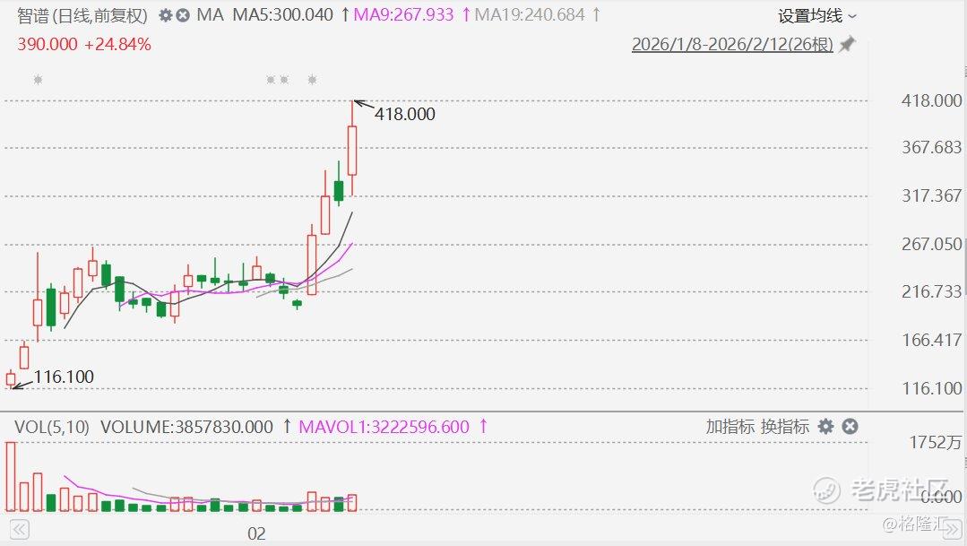 格隆汇2月12日|智谱(2513.HK)今日盘中一度涨超33%至418港元,创上市新高,市值一度突破1800亿港元;截至半日收盘涨24.84%,报390港元。消息面上,今日凌晨,智谱正式开源发布新一代基座模型GLM-5,被誉为智能体工程时代最强开源模型。