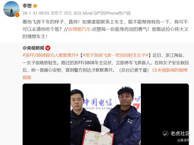 对此,理想官方和李想本人均在第一时间发声。前者表示,“点赞每一份挺身而出的勇气!致敬这位心怀大义的理想车主!”后者则说道,“看他飞奔下车的样子,真帅!如果谁能联系上车主,能不能帮我转告一下,我可不可以去请他吃个饭?”