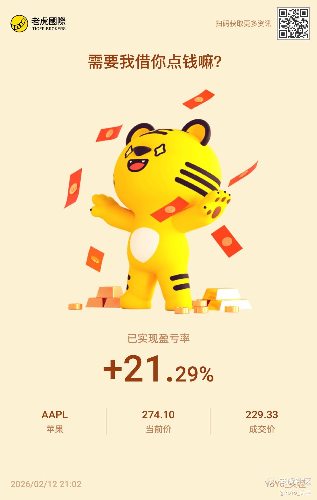 {"i18n":{"language":"zh_CN"},"data":{"magic":2,"id":531990498911304,"tweetId":"531990498911304","gmtCreate":1770901380659,"gmtModify":1770902632735,"author":{"id":4087109670265460,"idStr":"4087109670265460","authorId":4087109670265460,"authorIdStr":"4087109670265460","name":"YoYo_头茬","avatar":"https://static.tigerbbs.com/a0a68aedc7407a88a2e8a0f0260f8bcc","vip":1,"userType":1,"introduction":"","boolIsFan":false,"boolIsHead":false,"crmLevel":2,"crmLevelSwitch":0,"individualDisplayBadges":[],"fanSize":0,"starInvestorFlag":false},"themes":[{"themeId":"5bfad02ab61749c8bfe6573ac7bbe8a3","categoryId":"b76d3c59fc044df59779c041b25852a6","name":"晒晒更赚钱","type":0,"rnLink":"https://laohu8.com/RN?name=RNTheme&page=/theme/detail&rndata={\"themeId\":5bfad02ab61749c8bfe6573ac7bbe8a3}&rnconfig={\"headerBarHidden\": true}","description":"晒晒你的盈亏单,秀秀虎友们的实力!","image":"https://static.tigerbbs.com/347184265ee0be8c363259951f8033cb"}],"images":[{"img":"https://static.tigerbbs.com/81f23494653a5e8f8ddf31a22ee92dd7","width":"1086","height":"1713"}],"coverImages":[{"img":"https://static.tigerbbs.com/81f23494653a5e8f8ddf31a22ee92dd7","width":"1086","height":"1713"}],"title":"","html":"<html><head></head><body><a href=\"https://laohu8.com/S/AAPL\">$苹果(AAPL)$ </a> <img src=\"https://static.tigerbbs.com/81f23494653a5e8f8ddf31a22ee92dd7\" tg-width=\"1086\" tg-height=\"1713\"></body></html>","htmlText":"<html><head></head><body><a href=\"https://laohu8.com/S/AAPL\">$苹果(AAPL)$ </a> <img src=\"https://static.tigerbbs.com/81f23494653a5e8f8ddf31a22ee92dd7\" tg-width=\"1086\" tg-height=\"1713\"></body></html>","text":"$苹果(AAPL)$","highlighted":1,"essential":1,"paper":1,"likeSize":2,"commentSize":0,"repostSize":0,"favoriteSize":0,"link":"https://laohu8.com/post/531990498911304","repostId":0,"isVote":1,"tweetType":1,"viewCount":219,"commentLimit":10,"likeStatus":false,"favoriteStatus":false,"reportStatus":false,"symbols":["AAPL"],"verified":2,"subType":0,"readableState":1,"langContent":"EN","currentLanguage":"EN","warmUpFlag":false,"orderFlag":false,"shareable":true,"causeOfNotShareable":"","featuresForAnalytics":["晒单贴"],"commentAndTweetFlag":false,"andRepostAutoSelectedFlag":false,"upFlag":false,"length":12,"optionInvolvedFlag":false,"xxTargetLangEnum":"ORIG"},"commentList":[],"hasMoreComment":false,"orderType":2}