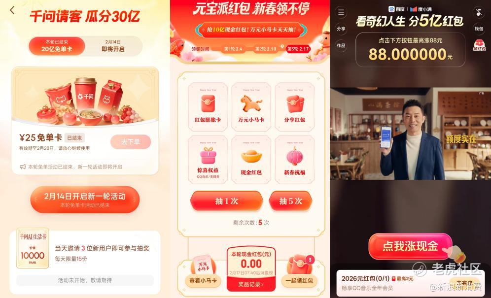 从十亿现金补贴到三十亿生活免单卡,再到技术基建的深度植入,这个春节,头部大厂们无不押上核心资源与最新技术,加入这场空前激烈的流量与入口争夺战。尽管用户间不乏对多次都只抽中“几分钱红包”的调侃,参与热度却丝毫未减。