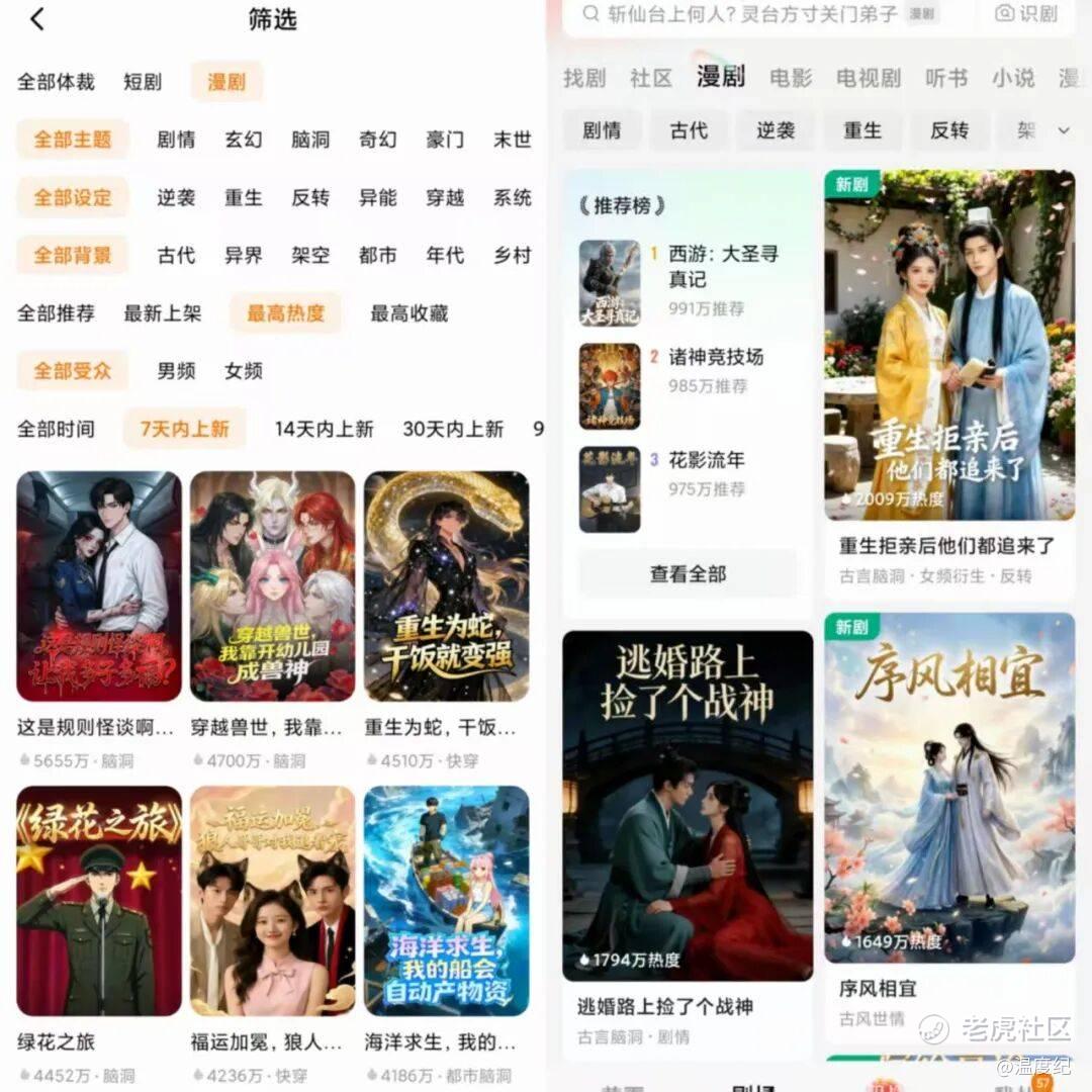 察觉热浪汹涌,开年后,长视频平台跑步入场。1月20日,爱奇艺升级漫剧分账新规,独家分账比例最高可至100%;2月4日,优酷和腾讯同时向外界发布了利好政策:优酷推出漫剧频道和“酷漫计划”,在原本分账基础上,单节目额外最高可得100万元激励;腾讯上线独立漫剧APP“火龙漫剧”,豪掷2320万元向中文在线采购漫剧内容。