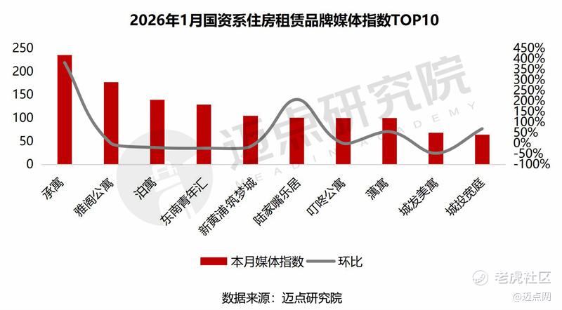 从媒体指数来看,1月媒体指数排名前十的品牌依次是:承寓、雅阁公寓、泊寓、东南青年汇、新黄浦·筑梦城、陆家嘴乐居、叮咚公寓、蕅寓、城发美寓、城投宽庭。其中,承寓的媒体指数增长显著,环比增长382.3%。