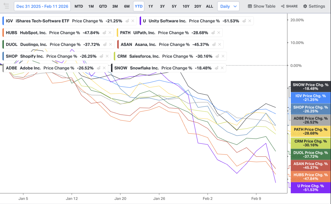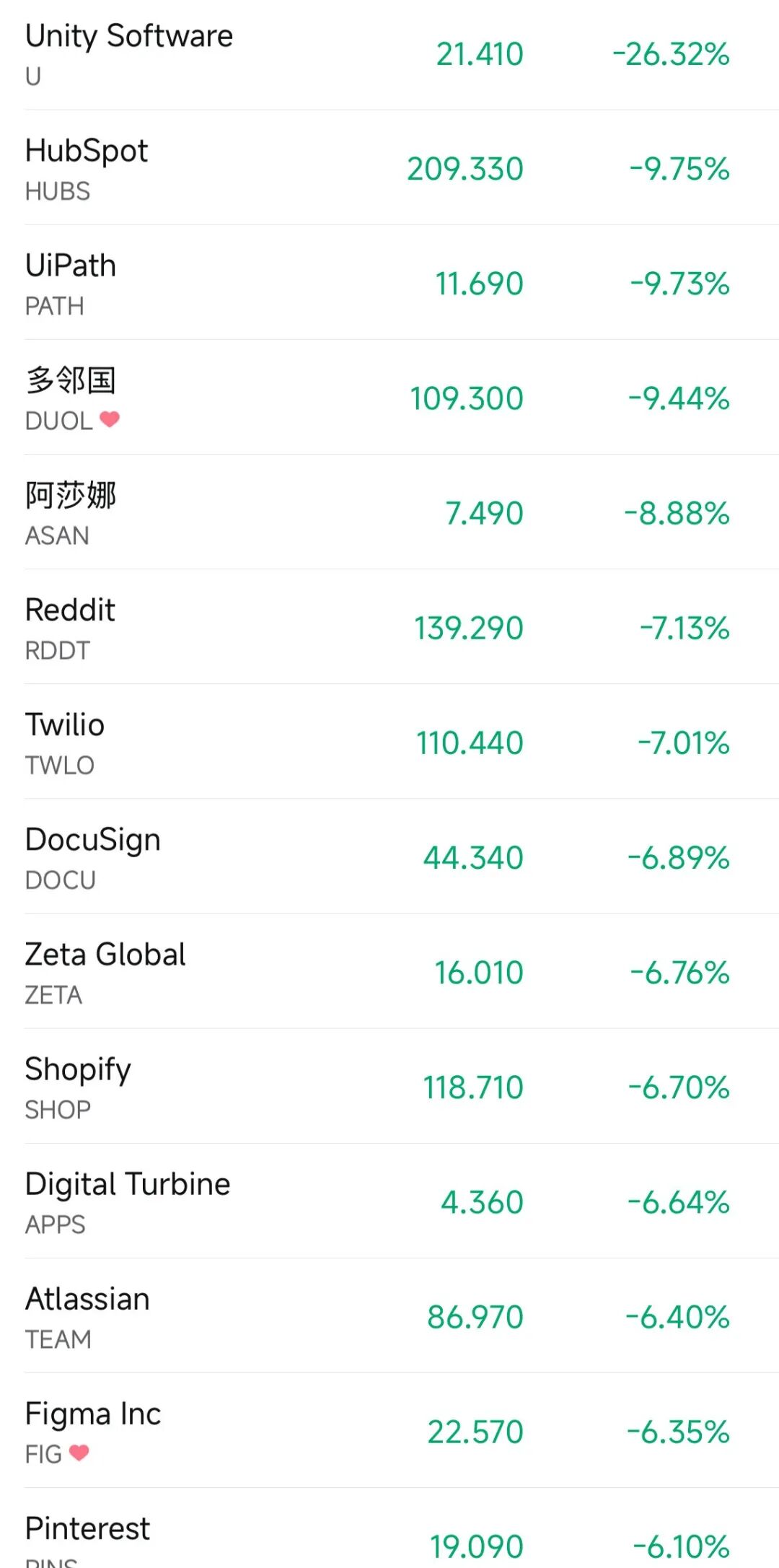 周三的抛售堪称"血洗"。AI应用软件板块全线溃败: