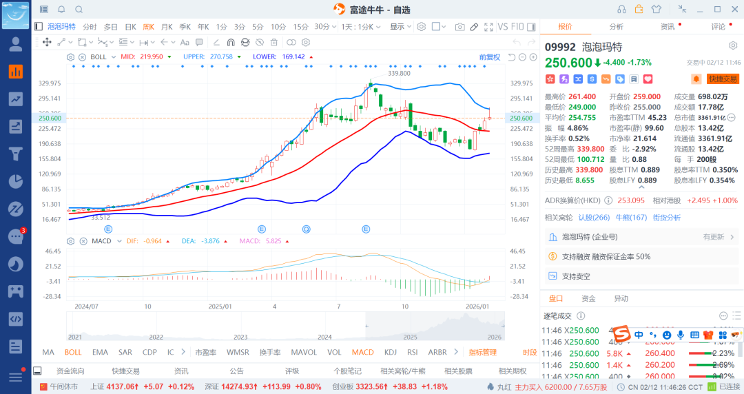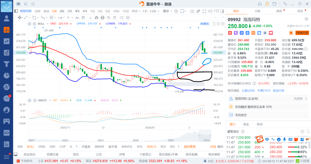 26-2-13 融券空之泡泡玛特触及压力下跌t出一笔(2)