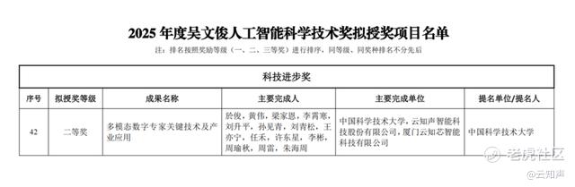 近日,素有“中国智能科学技术最高奖”之称的吴文俊人工智能科学技术奖2025年度获奖名单正式揭晓。云知声与中国科技大学组建的联合团队凭借原创性成果“多模态数字专家关键技术及产业应用”项目斩获科技进步奖二等奖,这是云知声继2019年首次摘得该奖项后再度登榜,成为业内为数不多两次斩获这一人工智能顶级荣誉的企业,硬核实力再度获得权威认可。