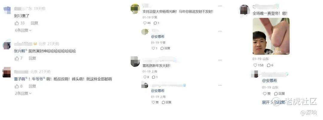 就像最后一段团舞,张兴朝的跳脱、杨雨光的自信、雷淞然的笨拙和酷酷的滕的反差萌全发挥出来了,粉丝都在感慨“四个人硬是抽象得各有千秋”。不齐舞团等博主也按捺不住,下场模仿、二创,变相给“喜人”做了二次传播,这波热度是赚大发了。