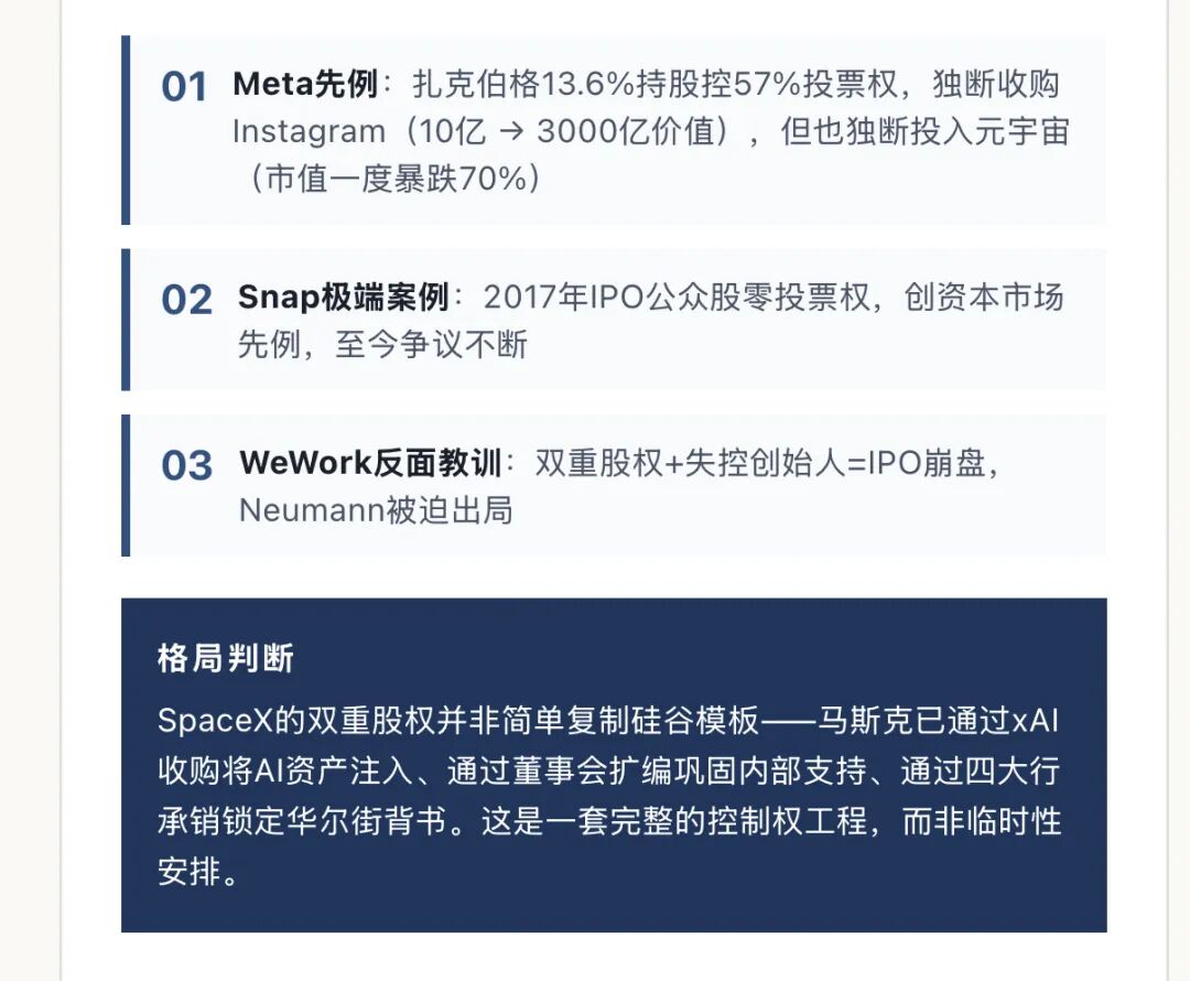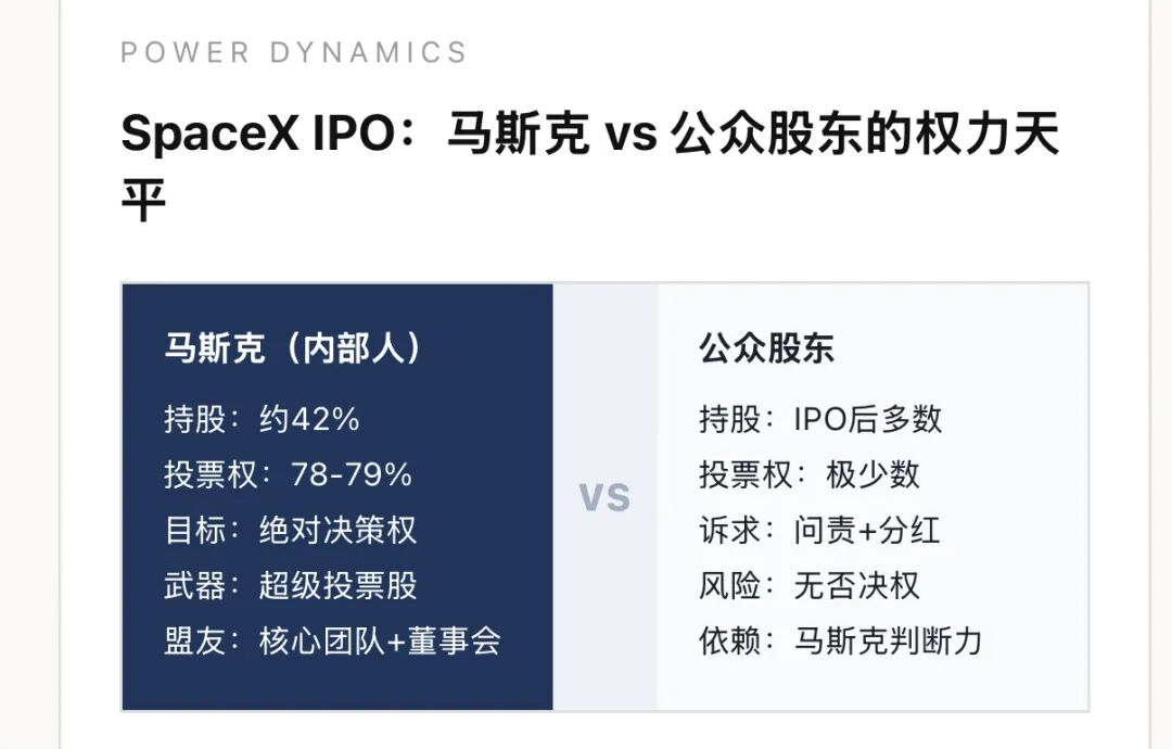 这意味着马斯克即便持股比例被稀释,依然能牢牢掌控这家估值可能达到1.5万亿美元的太空巨头的所有重大决策权。
