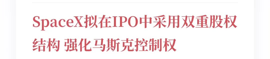 Bloomberg2月13日独家披露,SpaceX正认真考虑在今年IPO中采用双重股权结构。