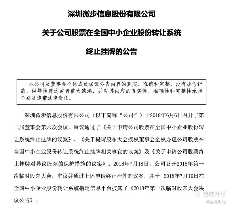 ▲《深圳微步信息股份有限公司关于公司股票在全国中小企业股份转让系统终止挂牌的公告》