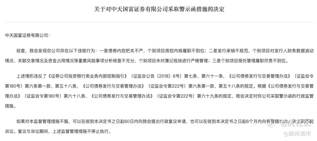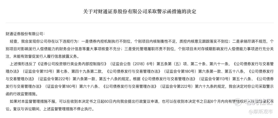 2月13日,证监会分别向财通证券、太平洋证券、中天国富证券出具警示函。经监管核查,三家券商在债券业务内部控制、发行承销及受托管理等环节均存在不同程度的合规瑕疵。