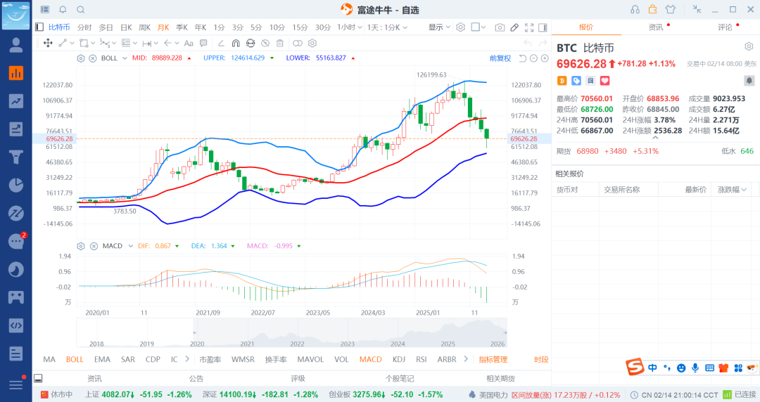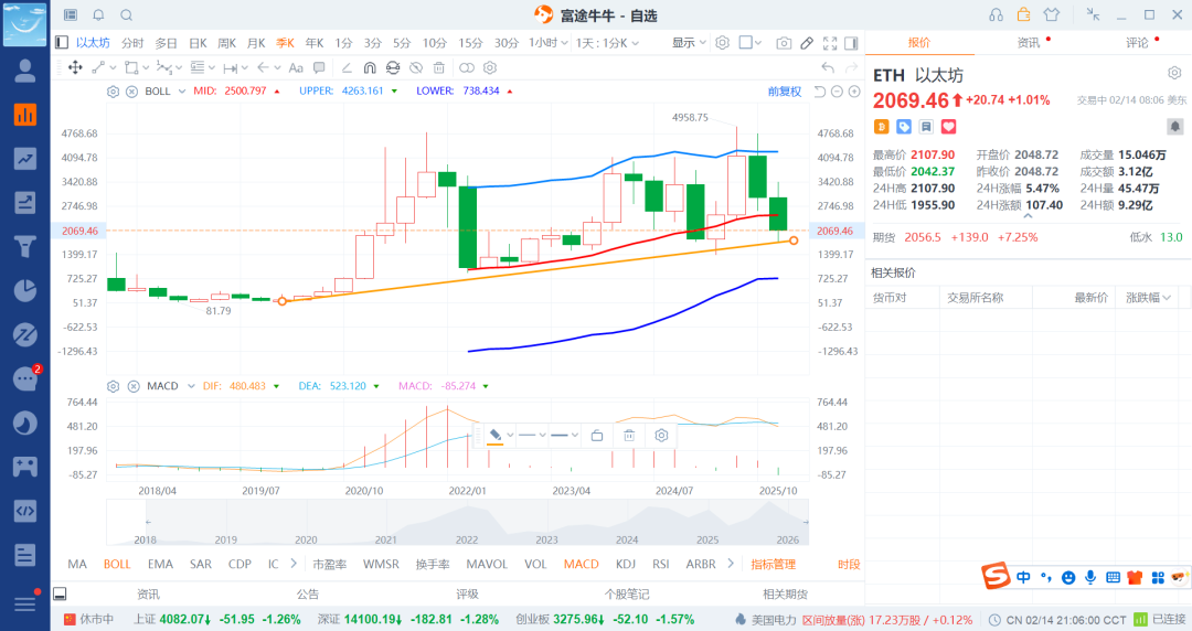26-2-8 数字货币之比特币和以太币大跌继续买进一笔底仓