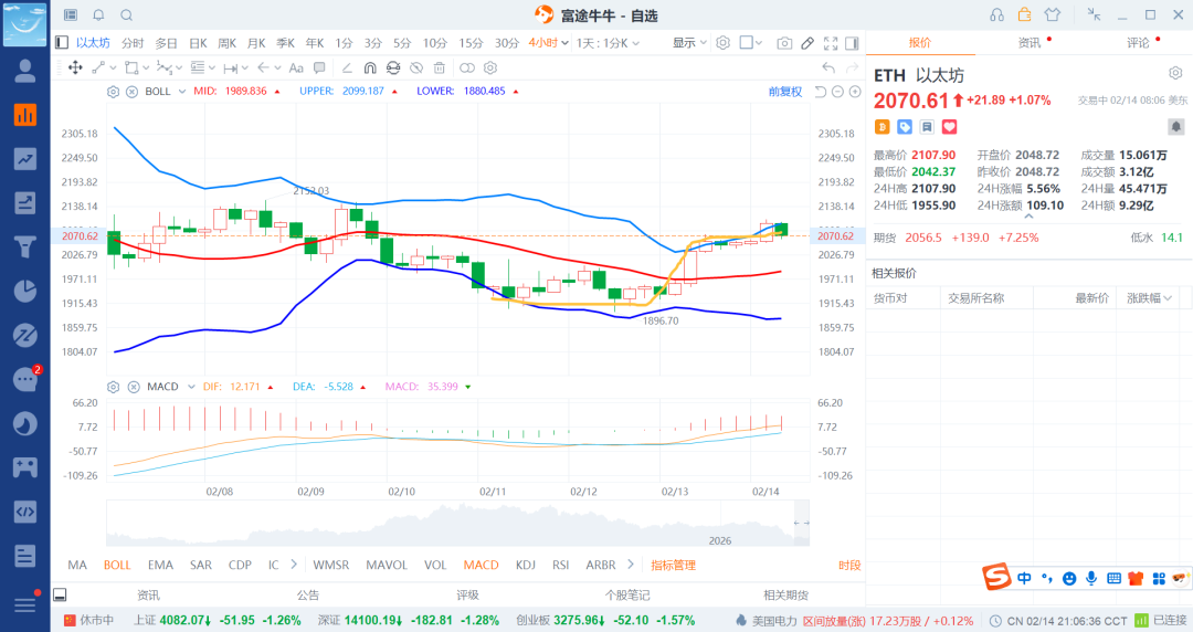 现在4h从boll带下轨1k9附近反弹到了上轨,都到了2k1附近了,差价大于10%了,自然就是可以抛售一笔了,数字货币是007的时间玩法了,当然了买了数字货币etf等开盘也能做了。