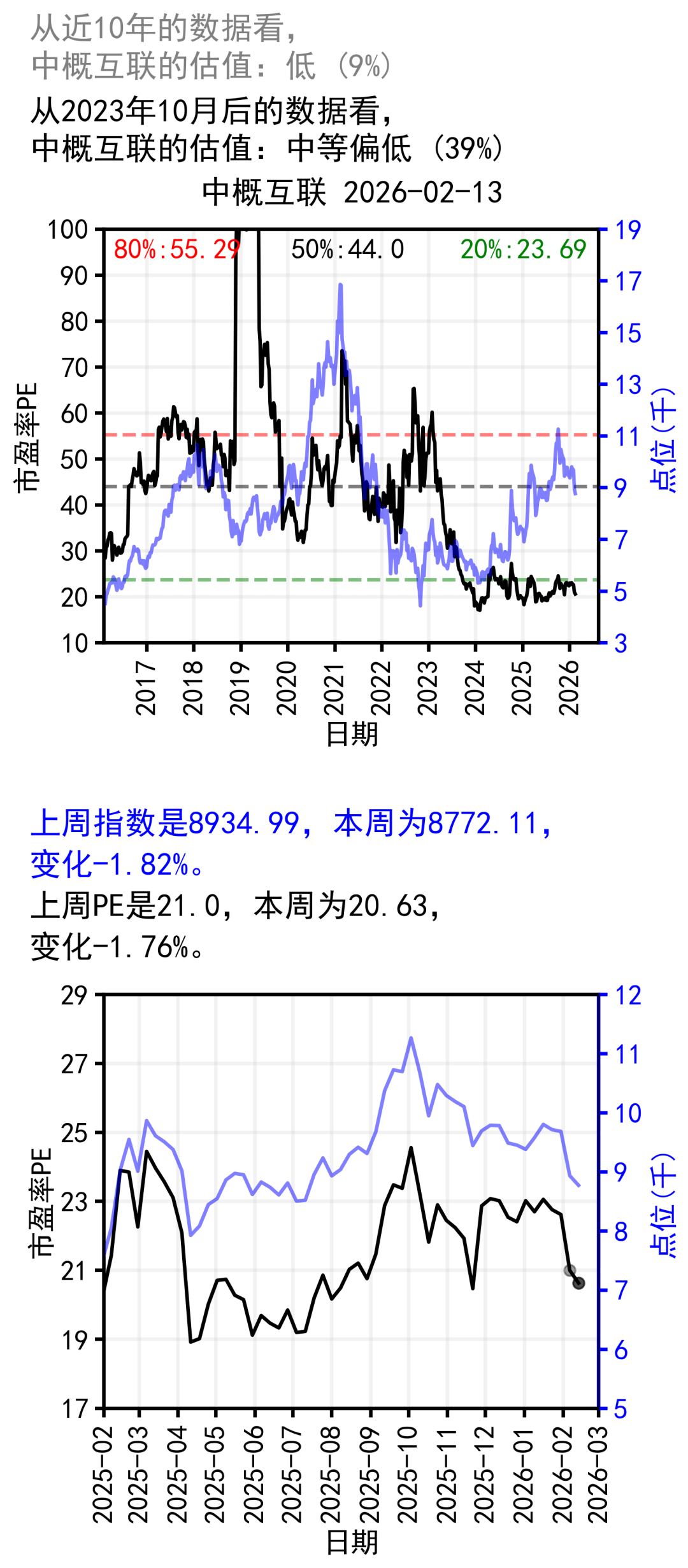 中概本周大跌,估值中等偏低。