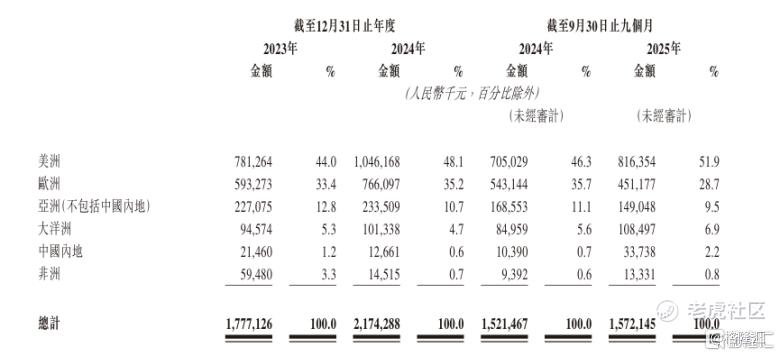 分区域看,公司收入高度集中于美洲、欧洲与亚洲(除中国内地)三大市场。2025年前三季度,美洲和欧洲市场合计贡献收入超八成,构成公司全球化收入的基本盘。同时,非洲、大洋洲等新兴市场自2024年起作为第二增长曲线,也呈现出收入逐年攀升的积极态势。