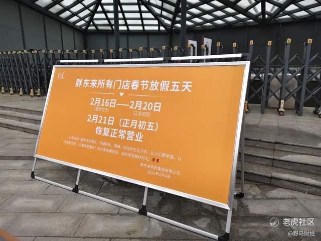 2月16日,胖东来放假了。超市门口难得清静,没了平时的熙攘,每个指示牌、每寸护栏依旧擦的干净、整洁。门口牌子显示:胖东来所有门店春节放假五天——2月16日腊月二十九-2月20日正月初四,2月21日(正月初五)恢复正常营业。分享自由·爱的文化理念,传播轻松、健康、阳光的生活方式,让人们更幸福、让社会更文明、让国家更美好!祝大家新春快乐,轻松享受美好时光!