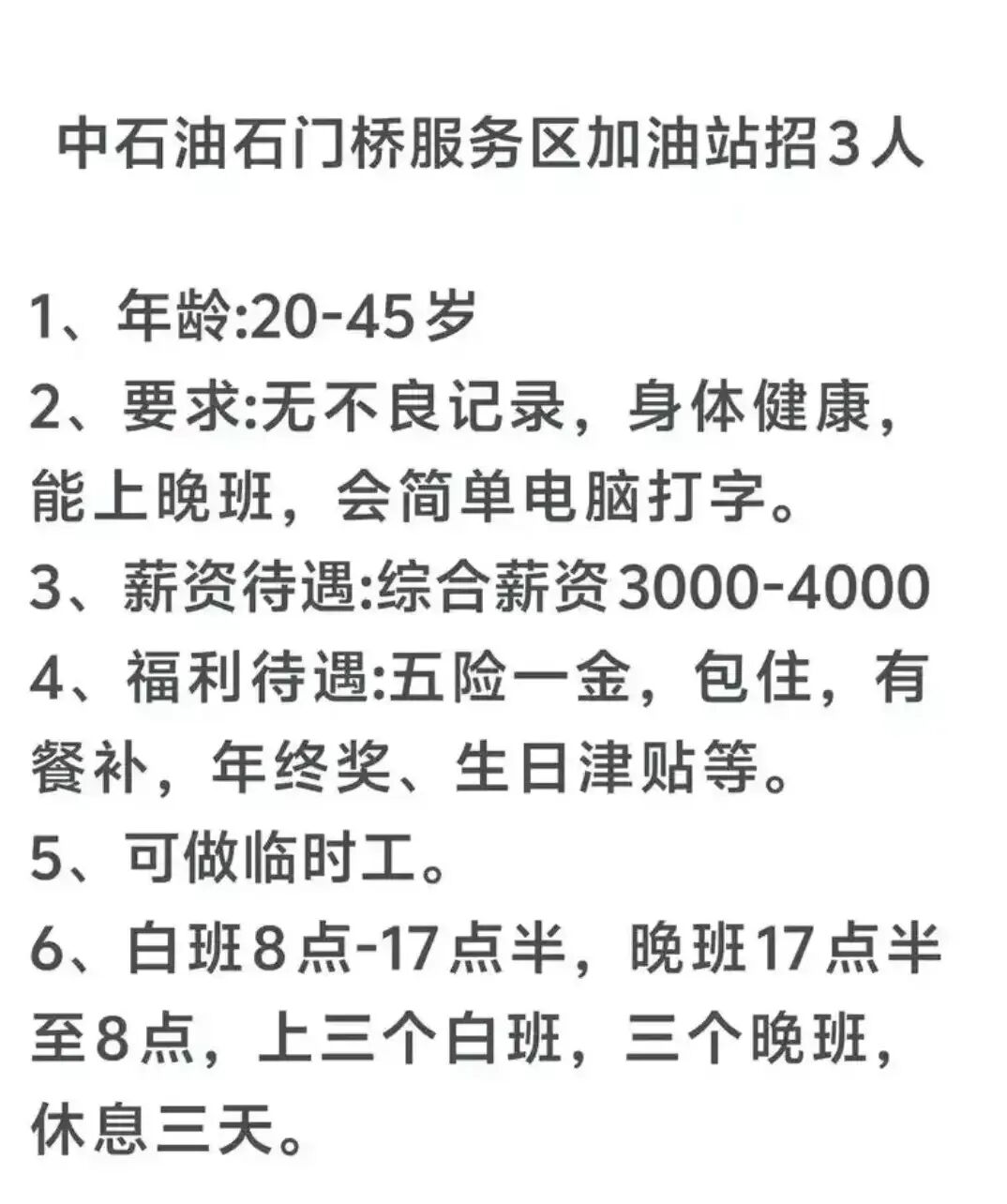 但两桶油的加油员常年缺编,天天招聘,甚至招35岁+的。