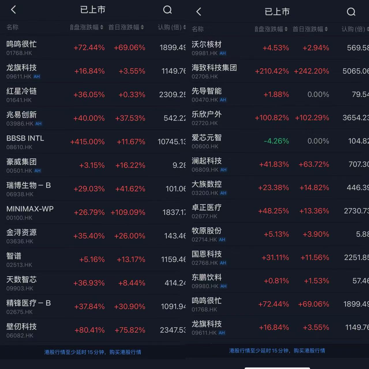 - AliceSam·02-23 11:17港股上市的公司,21只新股,基本实现首日上涨,平均涨幅约41%![财迷]1举报