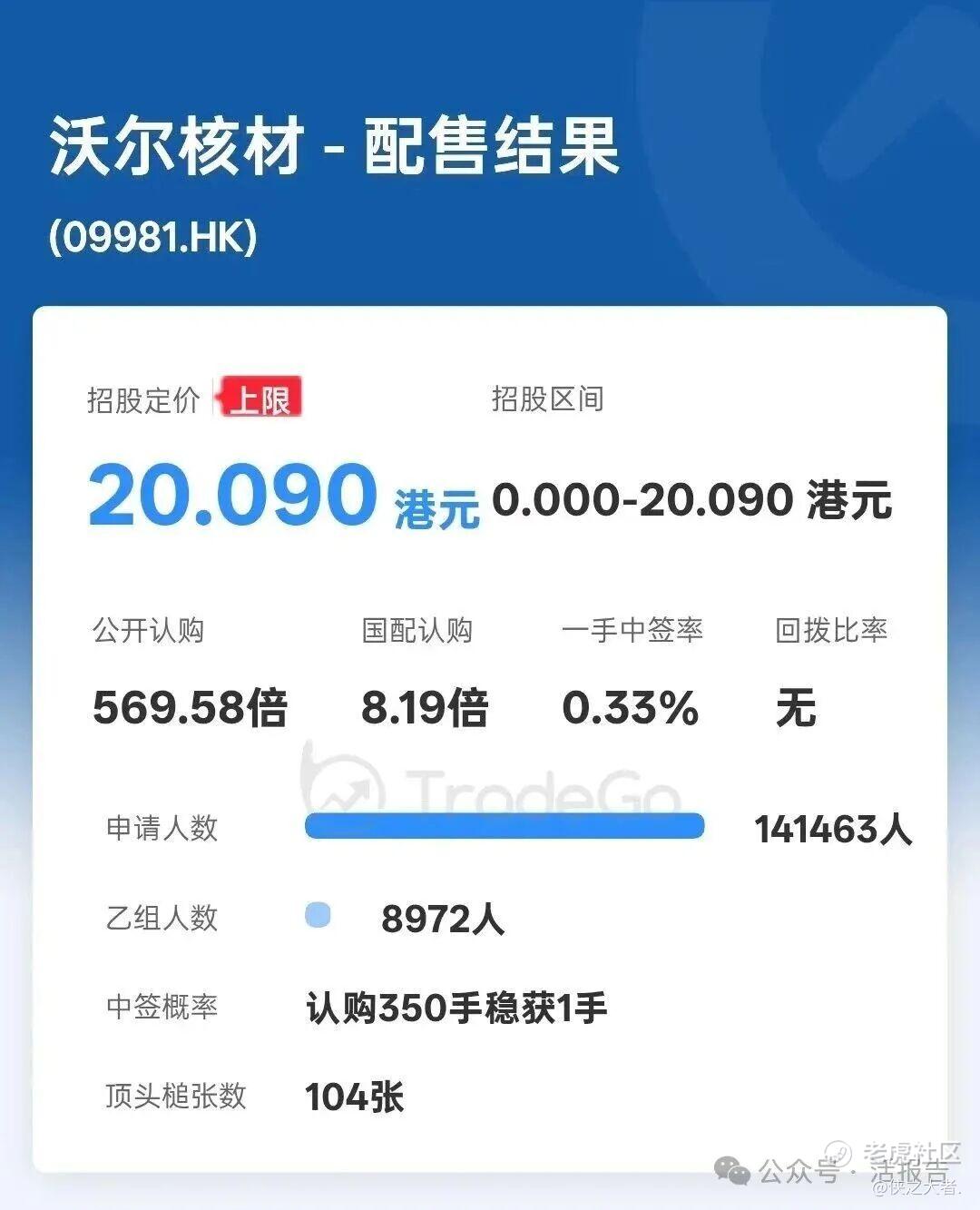 配售结果显示,沃尔核材本次申购人数共14.15万人,公开认购569.58倍,需认购350手才稳中一手,公开一手中签率仅0.33%,而国配认购8.19倍,与海致科技集团相差不大。