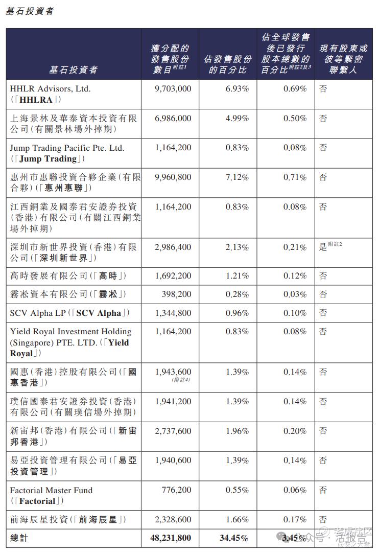 沃尔核材本次全球发售13998.88万股,发行定价20.09港元,募资总额约28.12亿港元。国配引入了16家基石投资者,认购约9.69亿港元,持股占全球发售股份的34.45%。