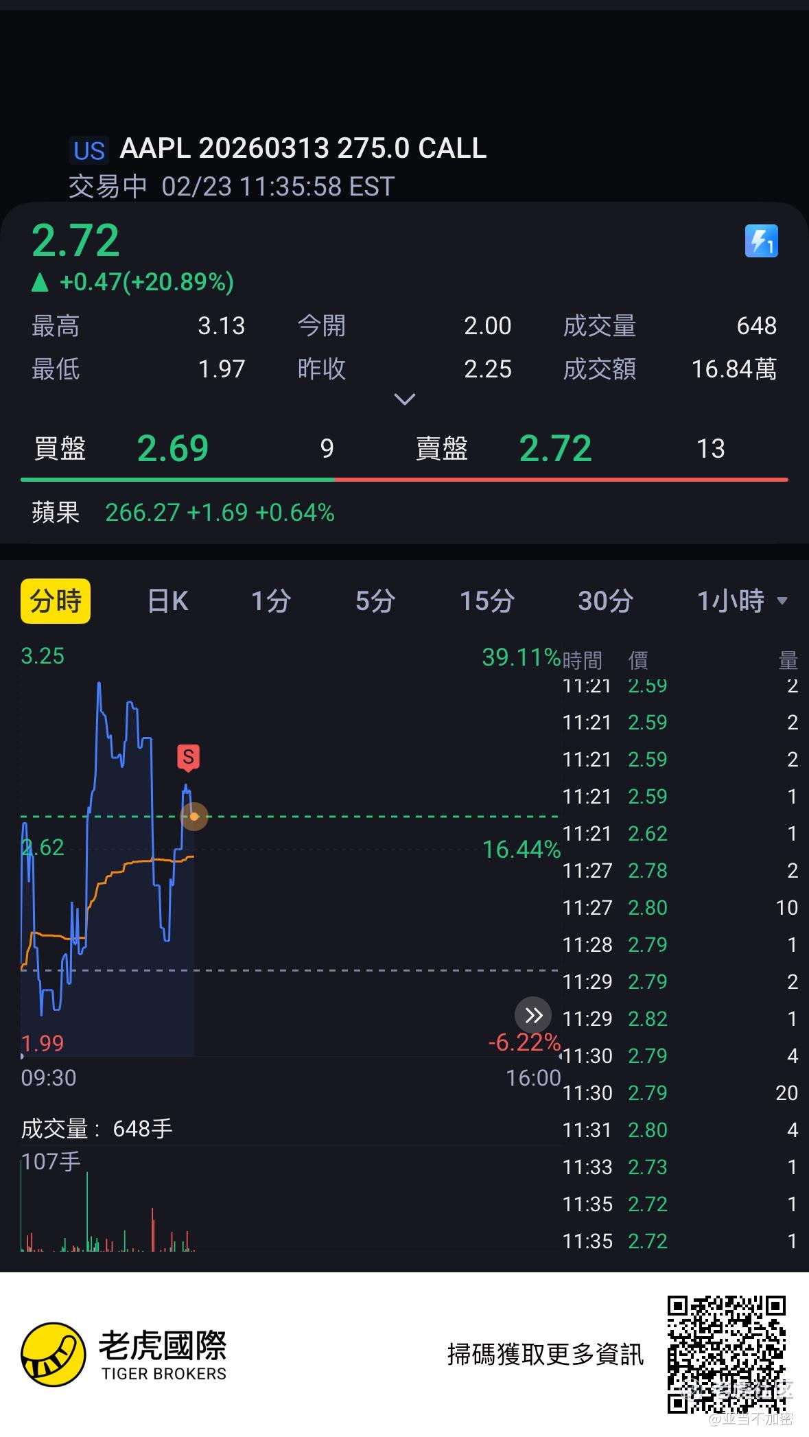 $AAPL 20260313 275.0 CALL$