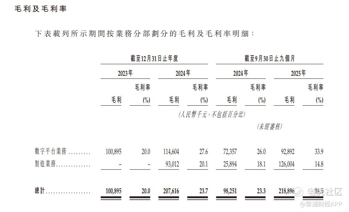 值得关注的是,这一畸高的费用率直至公司制造业务迅猛发展后才得以大幅稀释。2025年前三季度,随着制造业务收入占比跃升至75.6%,公司销售及营销开支占比已被压缩至16.79%。这一变化虽优化了整体费用结构,但也从侧面印证,其数字平台业务本身尚未形成可持续的、低成本的增长飞轮,前期增长高度依赖资金驱动。