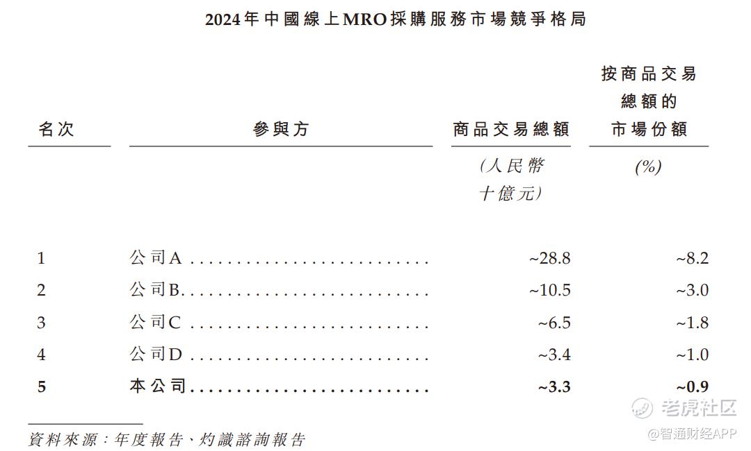 从市场格局维度审视,便不难理解鑫谊麟禾为何不惜通过补贴与降价来驱动平台业务增长。根据灼识咨询数据,2024年,鑫谊麟禾虽位列中国线上MRO采购服务市场第五名,但市场份额仅为0.9%,与第一名(8.2%)、第二名(3%)的领先企业存在显著差距,规模优势薄弱,在巨头环伺的竞争格局中成长空间承压。
