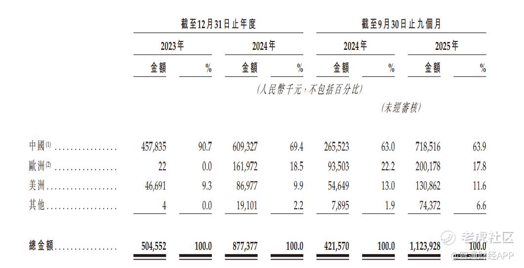 从地理区域来看,随着制造业务的爆发式成长,鑫谊麟禾的海外扩张初现成效。2023年时,鑫谊麟禾来自国内的收入占比高达90.7%,但至2025年前三季度,这一比例已降至63.9%,来自欧洲、美洲、以及其他地区的收入占比分别为17.8%、11.6%、6.6%。