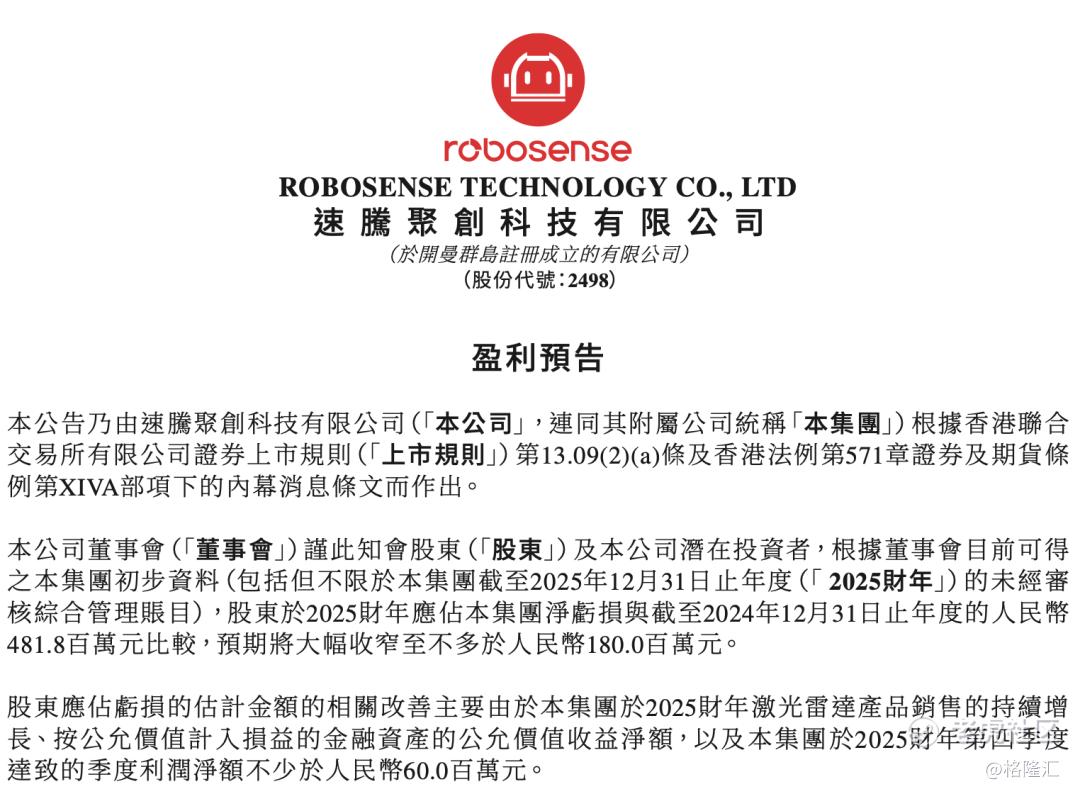 毫无疑问,这是激光雷达行业乃至硬科技赛道的一个标志性事件——激光雷达作为智能汽车与机器人时代的核心感知器件,行业长期以来处于“烧钱换市场”的阶段,还未全面实现从技术领先到商业成功的跨越,速腾聚创这份盈利预告无疑强化了投资者信心,有望引发资本市场对行业价值的重新评估。