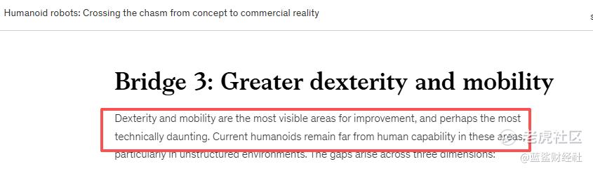 很多人误以为捞面、斟酒只是简单动作,但在机器人技术领域,这是极高难度的柔性任务,最能暴露技术短板。麦肯锡在《人形机器人:跨越从概念到商业现实的鸿沟》报告中指出:灵巧性与机动性是行业最亟待突破的瓶颈。
