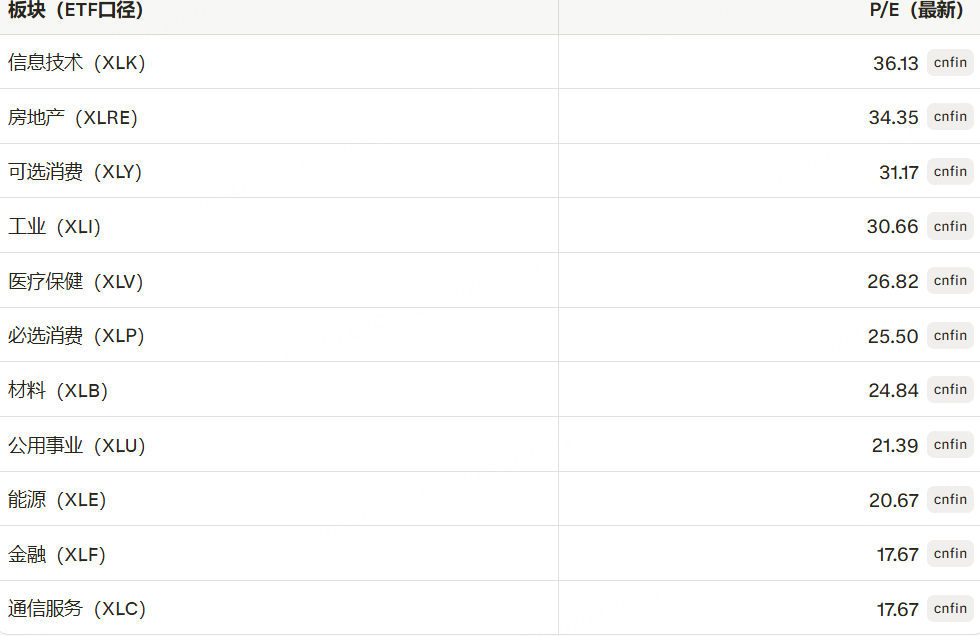 板块方面,我们要小心美股负债率较高的,市盈率较高但增长较低的板块,可以在一些被低估的板块中寻找一些价值股来跟进,比如我用AI列出了目前各大板块的市盈率数据,数据截止2026年的2月23日。