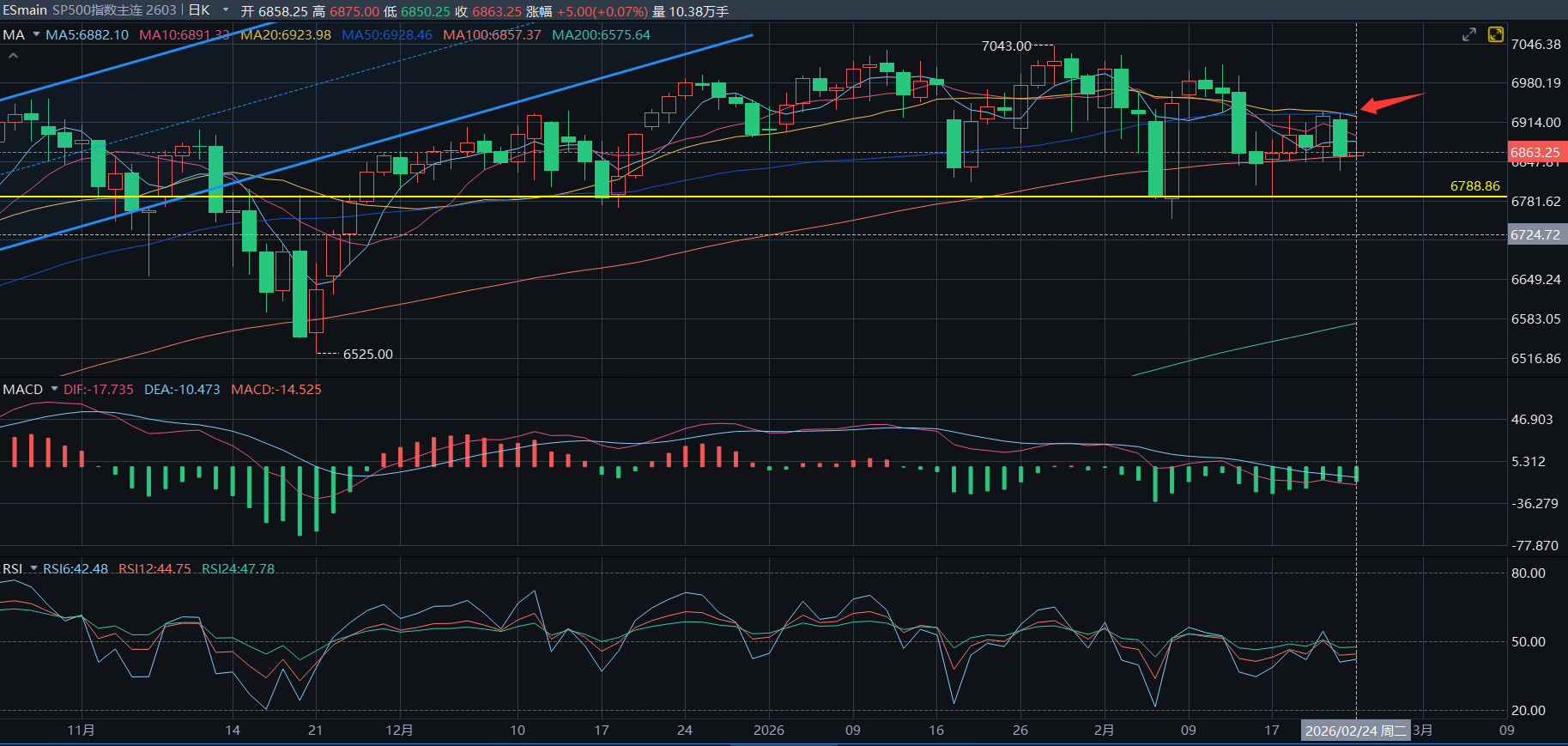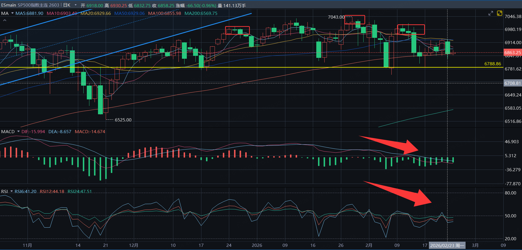 所以我们就盯紧标普期货的我图中的黄色支撑线就行,刚好也是20周均的支撑区域。