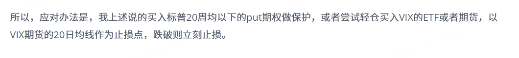 节前我跟大家说过,要暂时注意获利了结美股的看涨头寸,并在标普20周均以下尝试布置一些put期权的买方头寸,或者可以尝试逢低买入看多VIX的头寸,以VIX的20日均线为止损点,目前看来,VIX的看涨头寸应该是已经获利了,而put的买方头寸上,如果你出手早的话可能会获利,而如果出手晚一些的话目前可能是小亏,但并没有增加太多的风险敞口。