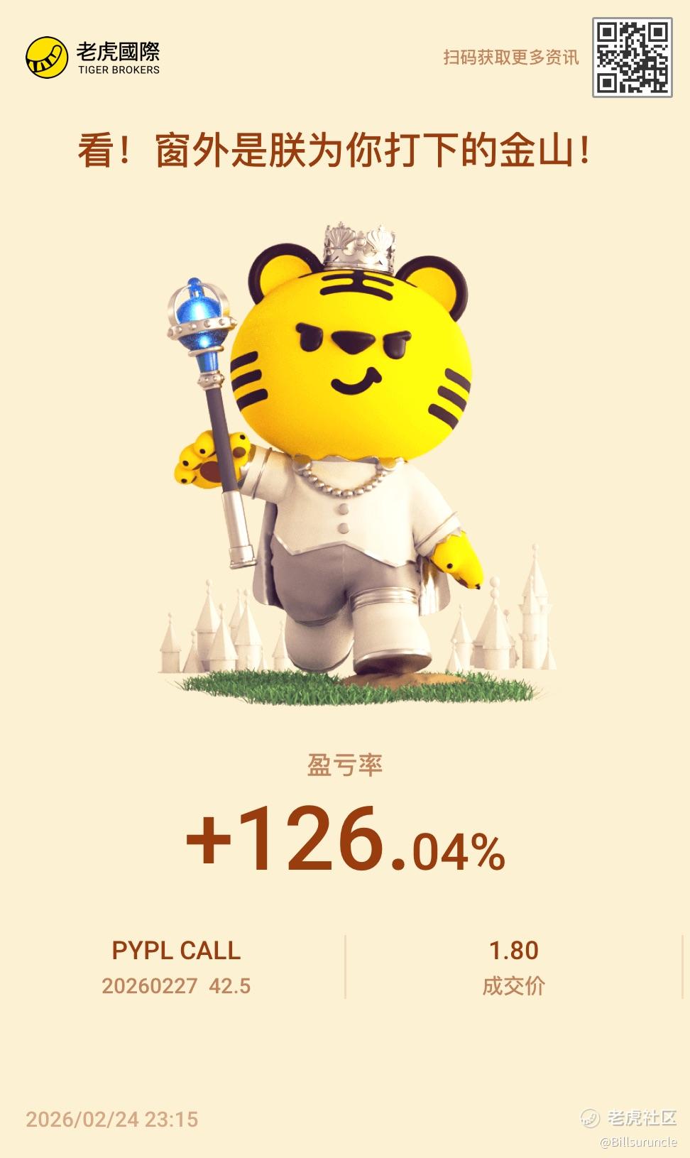 {"i18n":{"language":"zh_CN"},"data":{"magic":2,"id":536269708435864,"tweetId":"536269708435864","gmtCreate":1771946193963,"gmtModify":1771946196702,"author":{"id":3558311567362572,"idStr":"3558311567362572","authorId":3558311567362572,"authorIdStr":"3558311567362572","name":"Billsuruncle","avatar":"https://static.tigerbbs.com/664563dd4117355eac6011c758aae068","vip":1,"userType":1,"introduction":"","boolIsFan":false,"boolIsHead":false,"crmLevel":7,"crmLevelSwitch":0,"individualDisplayBadges":[],"fanSize":19,"starInvestorFlag":true,"fullDisclosureFlag":true,"starInvestorFollowerNum":19,"starInvestorOrderShareNum":302,"userFollowInvestorFlag":false,"orderNotificationFlag":false,"ror":-91.98,"showRor":true,"winRationPercentage":73.991031,"tradeVolumeEst":0},"themes":[{"themeId":"5bfad02ab61749c8bfe6573ac7bbe8a3","categoryId":"b76d3c59fc044df59779c041b25852a6","name":"晒晒更赚钱","type":0,"rnLink":"https://laohu8.com/RN?name=RNTheme&page=/theme/detail&rndata={\"themeId\":5bfad02ab61749c8bfe6573ac7bbe8a3}&rnconfig={\"headerBarHidden\": true}","description":"晒晒你的盈亏单,秀秀虎友们的实力!","image":"https://static.tigerbbs.com/347184265ee0be8c363259951f8033cb"}],"images":[{"img":"https://static.tigerbbs.com/82bd7bc0db21f3accbf84cd10409e798","width":"972","height":"1631"}],"coverImages":[{"img":"https://static.tigerbbs.com/82bd7bc0db21f3accbf84cd10409e798","width":"972","height":"1631"}],"title":"","html":"<html><head></head><body><p><a href=\"https://laohu8.com/OPT/PYPL 20260227 42.5 CALL\">$PYPL 20260227 42.5 CALL$</a> 卖少了</p><img src=\"https://static.tigerbbs.com/82bd7bc0db21f3accbf84cd10409e798\" tg-width=\"972\" tg-height=\"1631\"></body></html>","htmlText":"<html><head></head><body><p><a href=\"https://laohu8.com/OPT/PYPL 20260227 42.5 CALL\">$PYPL 20260227 42.5 CALL$</a> 卖少了</p><img src=\"https://static.tigerbbs.com/82bd7bc0db21f3accbf84cd10409e798\" tg-width=\"972\" tg-height=\"1631\"></body></html>","text":"$PYPL 20260227 42.5 CALL$ 卖少了","highlighted":1,"essential":1,"paper":1,"likeSize":0,"commentSize":0,"repostSize":0,"favoriteSize":0,"link":"https://laohu8.com/post/536269708435864","repostId":0,"isVote":1,"tweetType":1,"viewCount":353,"commentLimit":10,"likeStatus":false,"favoriteStatus":false,"reportStatus":false,"symbols":["PYPL"],"verified":2,"subType":0,"readableState":1,"langContent":"CN","currentLanguage":"CN","warmUpFlag":false,"orderFlag":false,"shareable":true,"causeOfNotShareable":"","featuresForAnalytics":["晒单贴"],"commentAndTweetFlag":false,"andRepostAutoSelectedFlag":false,"upFlag":false,"length":28,"optionInvolvedFlag":true,"xxTargetLangEnum":"ZH_CN"},"commentList":[],"hasMoreComment":false,"orderType":2}