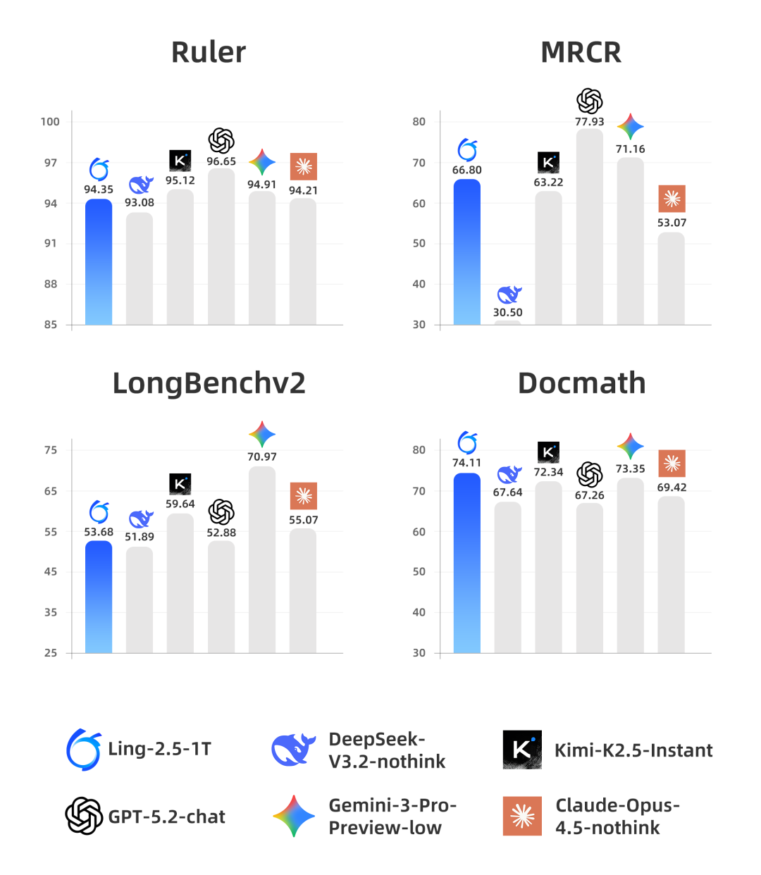 ▲Ling-2.5-1T在4 项评测任务上的表现排名