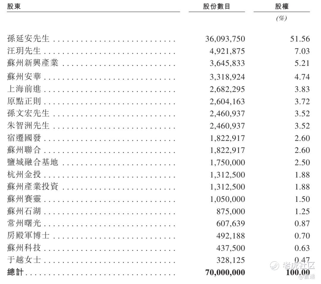 IPO前,孙延安持股为51.56%,汪玥持股为7.03%,苏州新兴产业持股为5.21%,苏州安华持股为4.74%,上海前进持股为3.83%;