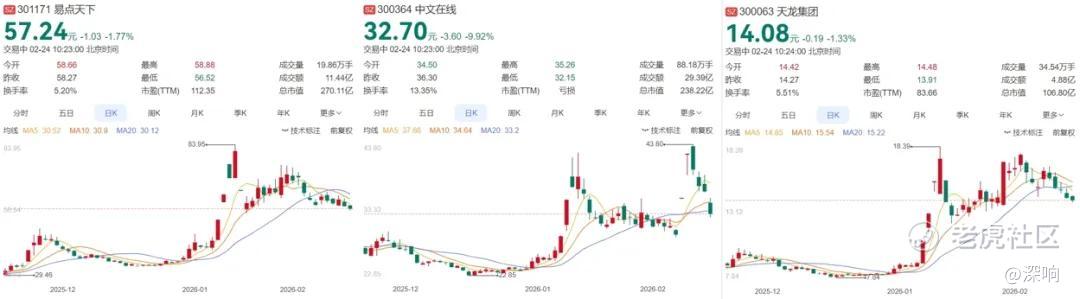 据中国信通院统计,2025年超68%中大型企业将GEO纳入年度预算;资本市场态度积极,GEO概念股持续飘红,“易中天2.0”(易点天下、中文在线、天龙集团)年内分别涨41%、31%、65%(截至2月24日收盘)。