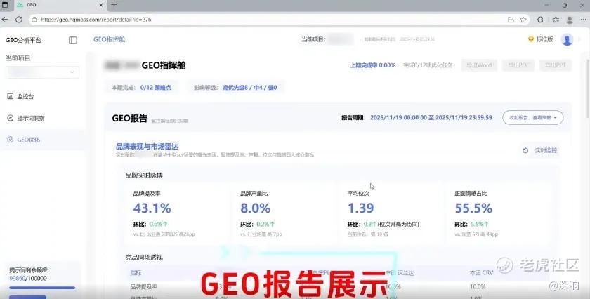 浙文互联的「HochiGEO」方案则更为激进,通过自研模型监测提及率、声量比、内容匹配度等七项指标,试图还原品牌在 AI 语境下的真实权重。