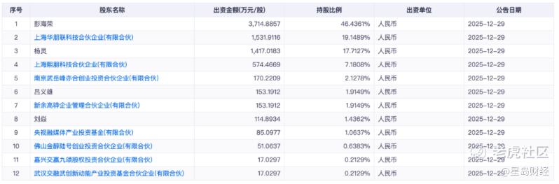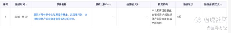 《星岛》查询的公开资料显示,三个月前的2025年11月24日,朋熙半导体曾完成A轮融资,投资机构包括中北私募证券基金、交银投资、央视融媒体产业投资基金和武岳峰科创等。其中,中北私募证券基金属泸州老窖集团旗下国有全资企业;武岳峰为上海自贸区注册企业,由三位清华校友企业家共同创办,投资案例包括瑞芯微电子(603893.SH)、英集芯科技(688209.SH)和星环聚能等科技公司。